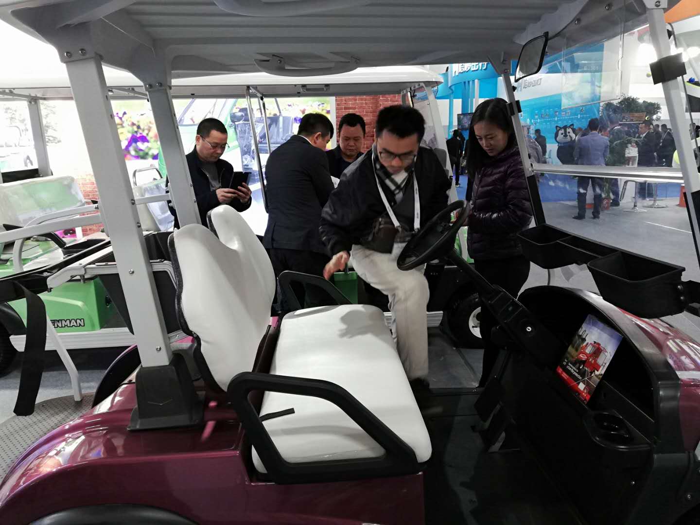 展會(huì)上,我公司電動(dòng)車輛吸引了眾多參觀者的目光,來(lái)自景區(qū),游樂(lè)場(chǎng)等各行各業(yè)有合作意向的專業(yè)客戶和我公司工作人員進(jìn)行詳細(xì)地咨詢與洽談。